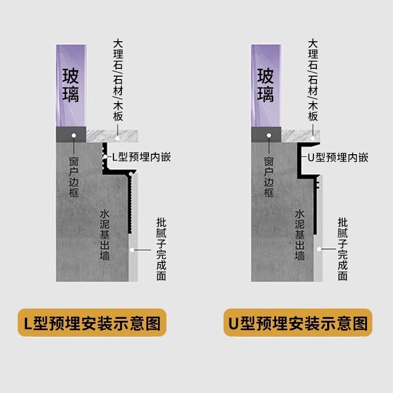 窗台石收口条铝合金型材收边条加厚瓷砖包边大理石飘窗极简阴影缝