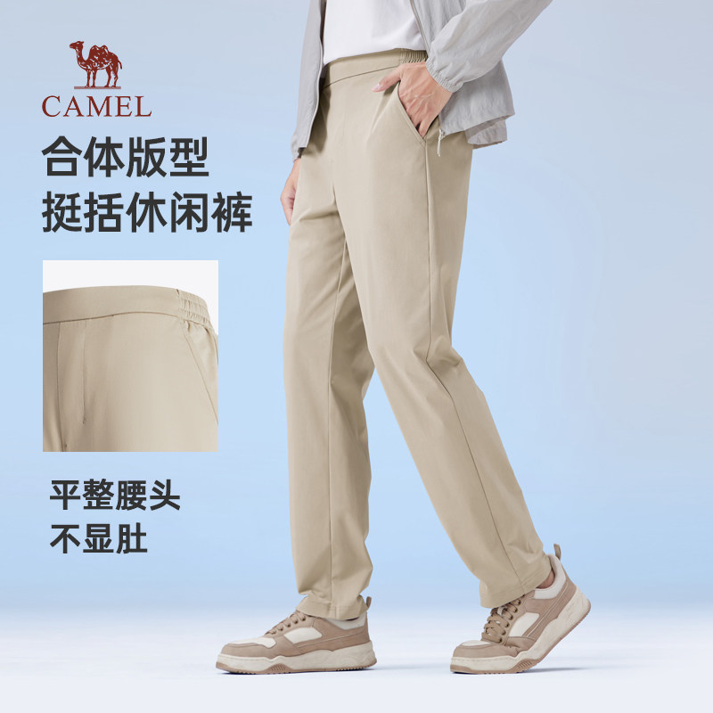 骆驼男装直筒休闲裤男2025新款春夏季吸湿透气速干高弹通勤长裤子