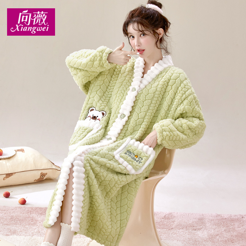 可外穿家居服睡袍珊瑚绒浴袍睡衣甜美可爱秋冬女加绒加厚长款保暖