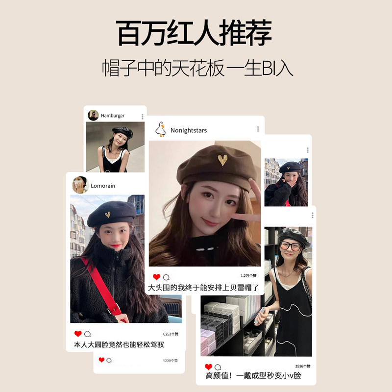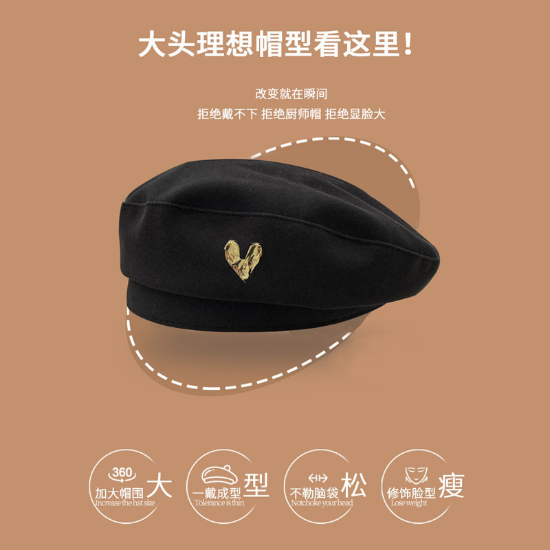 网红大头围贝雷帽女秋冬毛呢八角帽大码蓓蕾画家帽子适合大脸圆脸