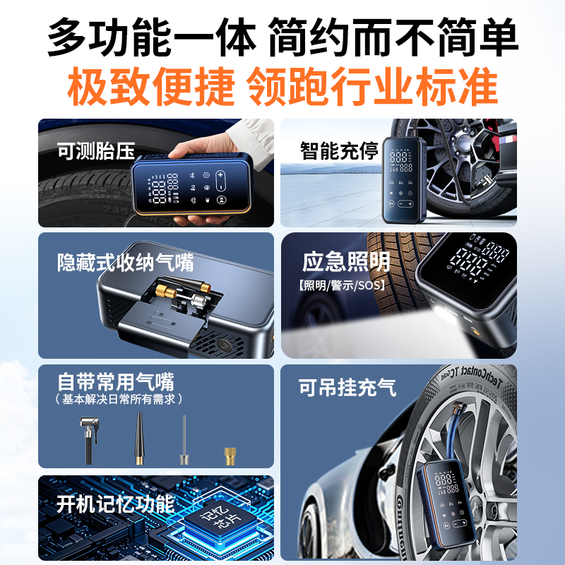 车载无线充气泵车用便携式汽车用打气泵电动轿车轮胎高压打气筒宝