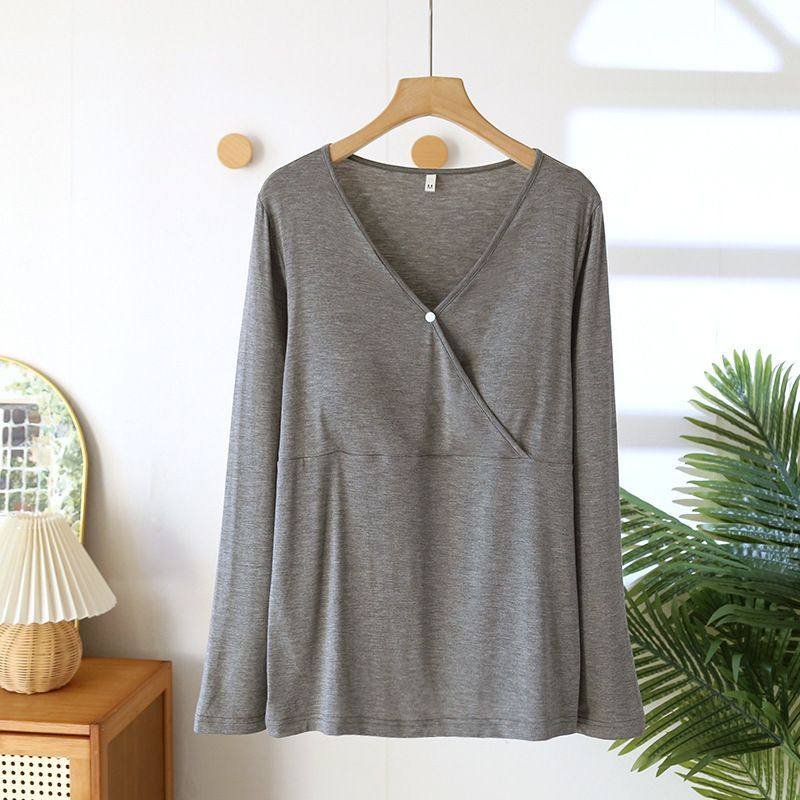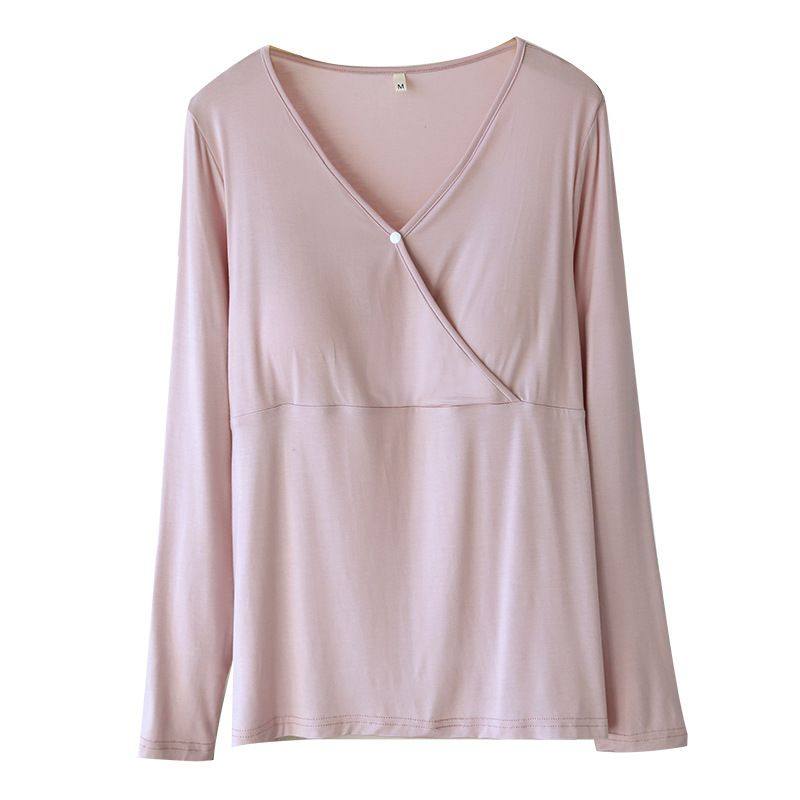 罗丽丝哺乳长袖上衣免穿文胸孕妇喂奶上衣莫代尔月子服夏季薄款哺