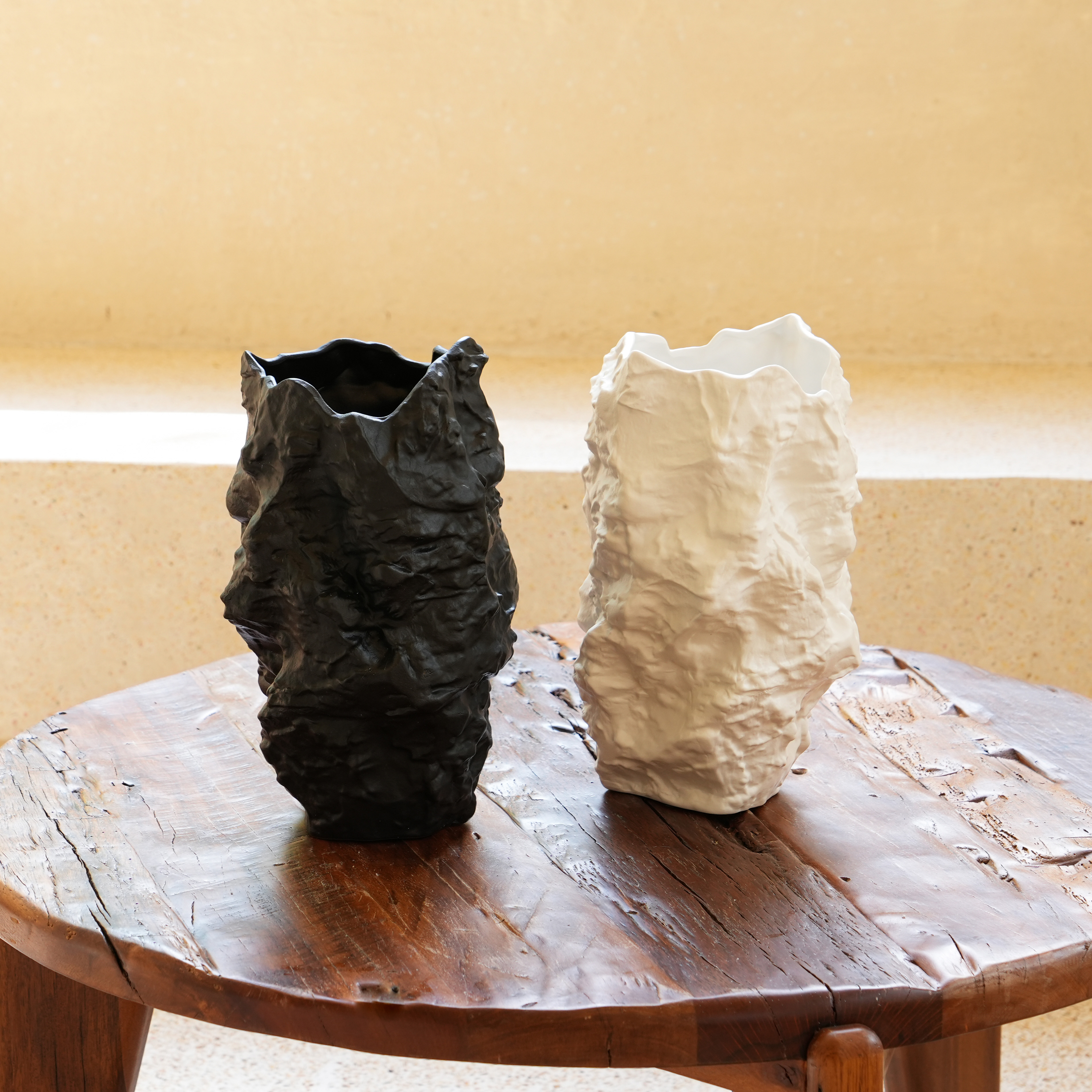 寂器陶瓷花瓶原创侘寂树干黑白大口径水培花瓶轻奢小众复古摆件