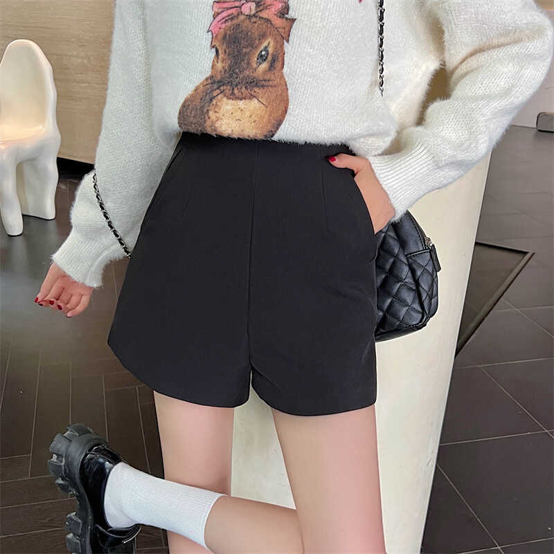 小个子高腰气质显瘦西装料短裤胖mm穿搭靴裤阔腿休闲裤A字型半裤