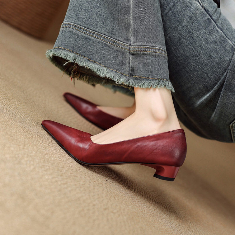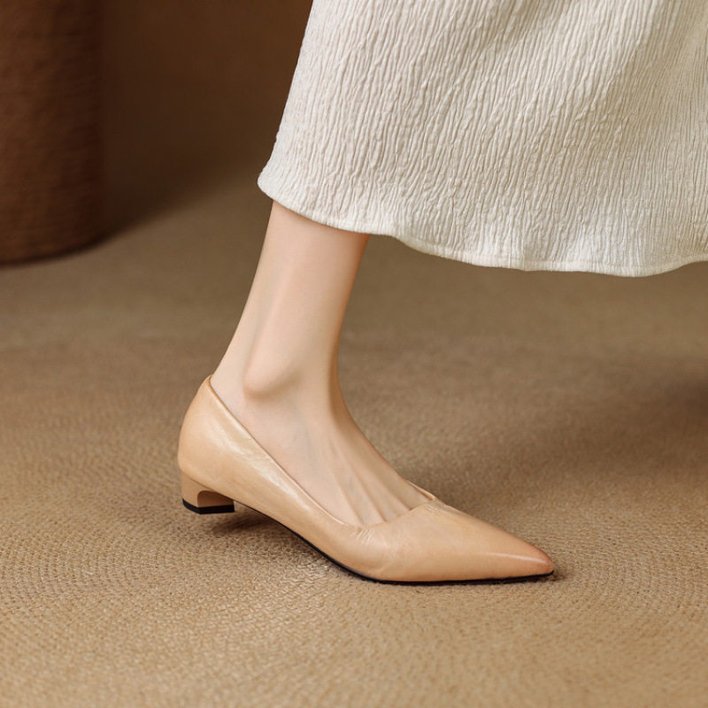 法式优雅~2.5cm坡跟单鞋女春尖头羊皮静音软底商务通勤瓢鞋小皮鞋