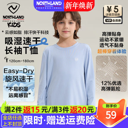 诺诗兰儿童长袖T恤男女童速干打底衫春秋中大童圆领上衣吸湿排汗