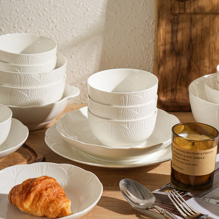 舍里白色浮雕餐具陶瓷米饭碗家用2025年新款汤碗西餐盘菜盘吃饭碗