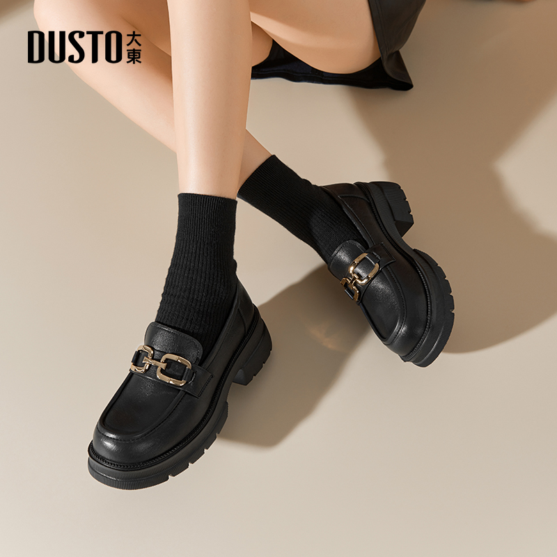大东乐福鞋女鞋厚底黑色小皮鞋