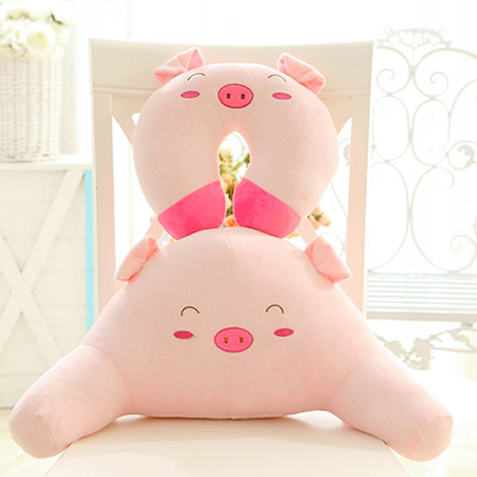 可爱 卡通动物龙猫腰枕颈枕 U型枕办公室两件套护腰靠垫背坐垫