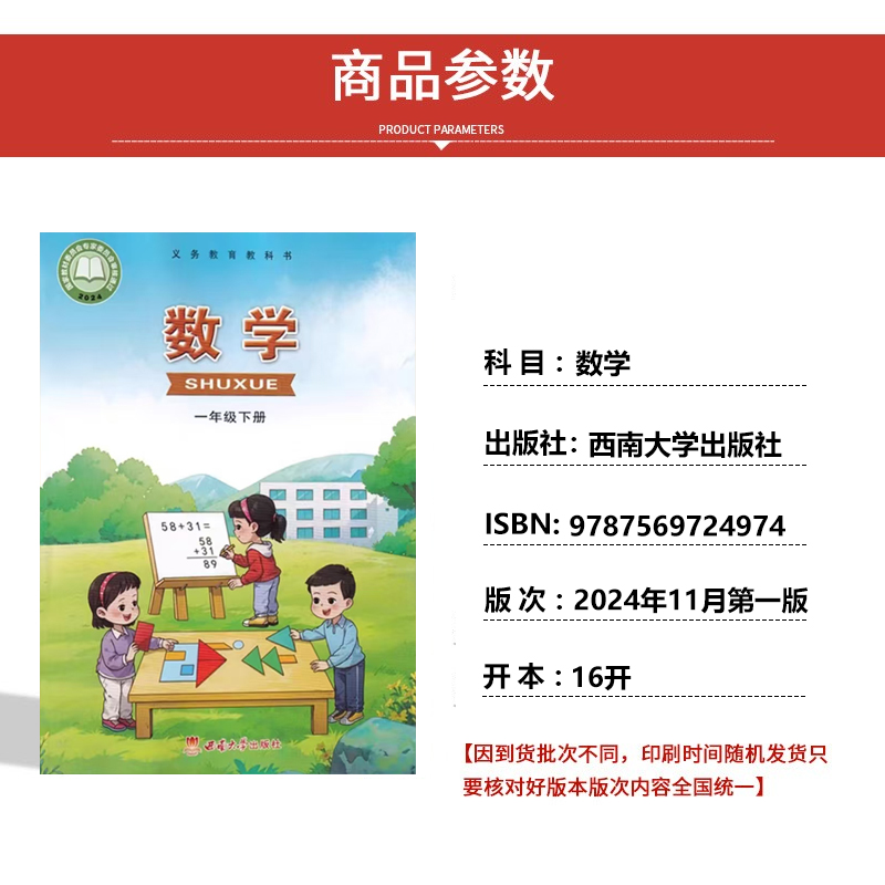 【重庆地区专用】正版包邮2025适用西师大版小学一年级上下册数学全套2本教材教科书西师大版1年级上下册数学书全套西南大学出版社
