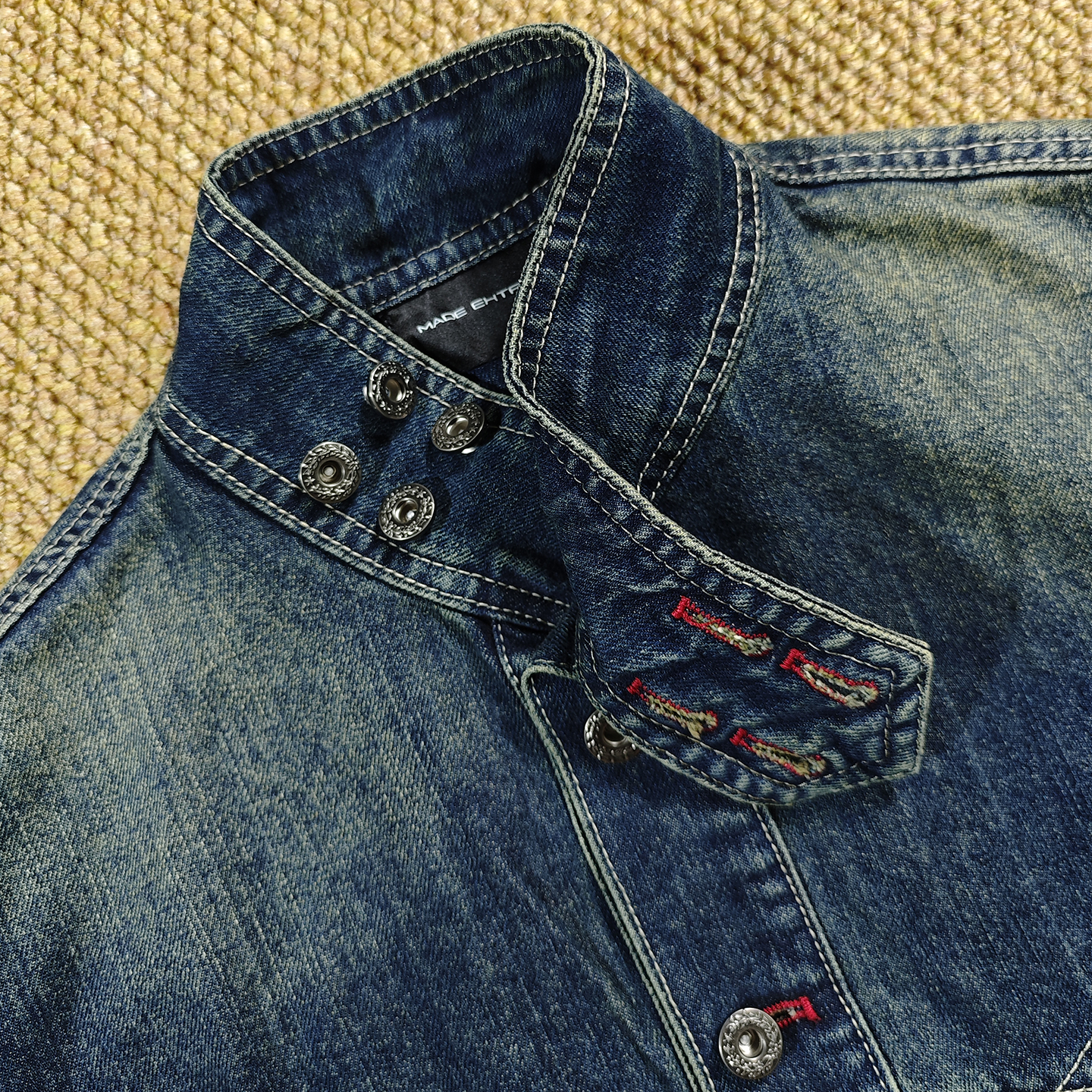 MadeXdfk个性拼接剪裁哈灵顿牛仔外套男上衣boxy短款美式复古夹克