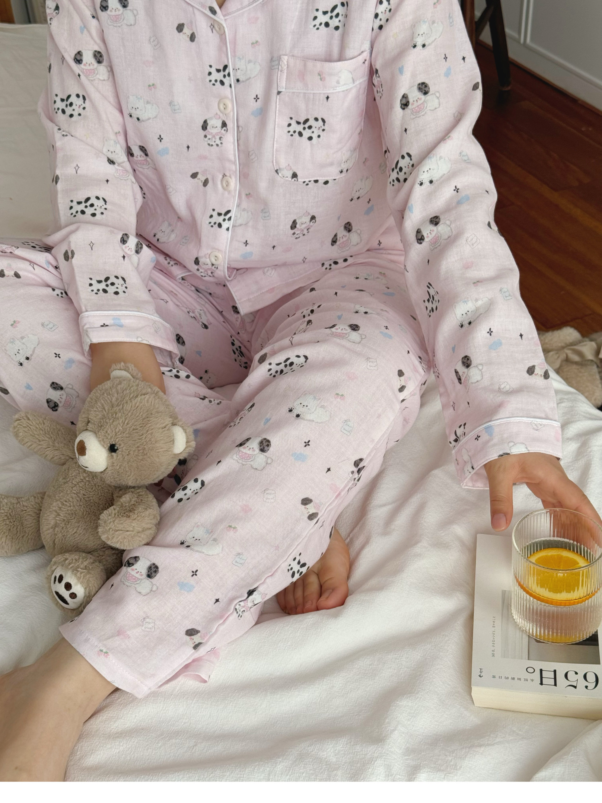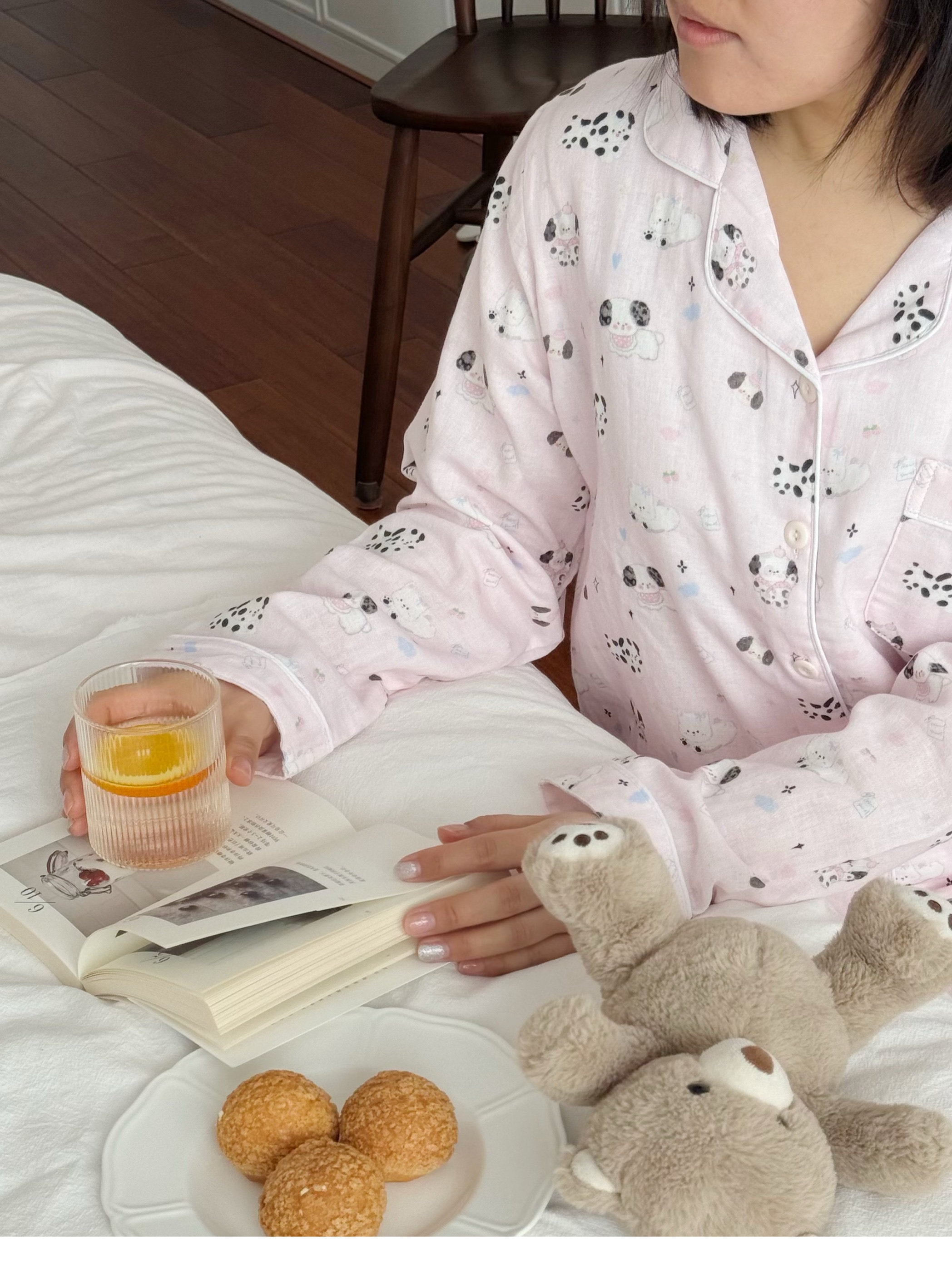 兔子家春夏季双层纱布睡衣套装家居服柔软数码印花透气家居服