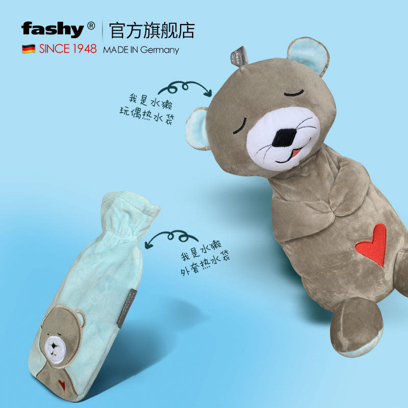 可爱卡通水獭玩偶外套fashy德国进口冲注水PVC防爆热水袋暖手宝