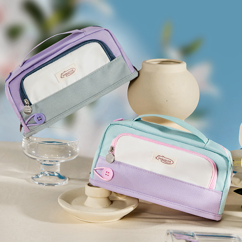 弘典纽扣2.0笔袋女生2024新款文具盒男孩款大容量文具袋高颜值ins风铅笔袋初中生简约纯色铅笔盒化妆刷收纳包