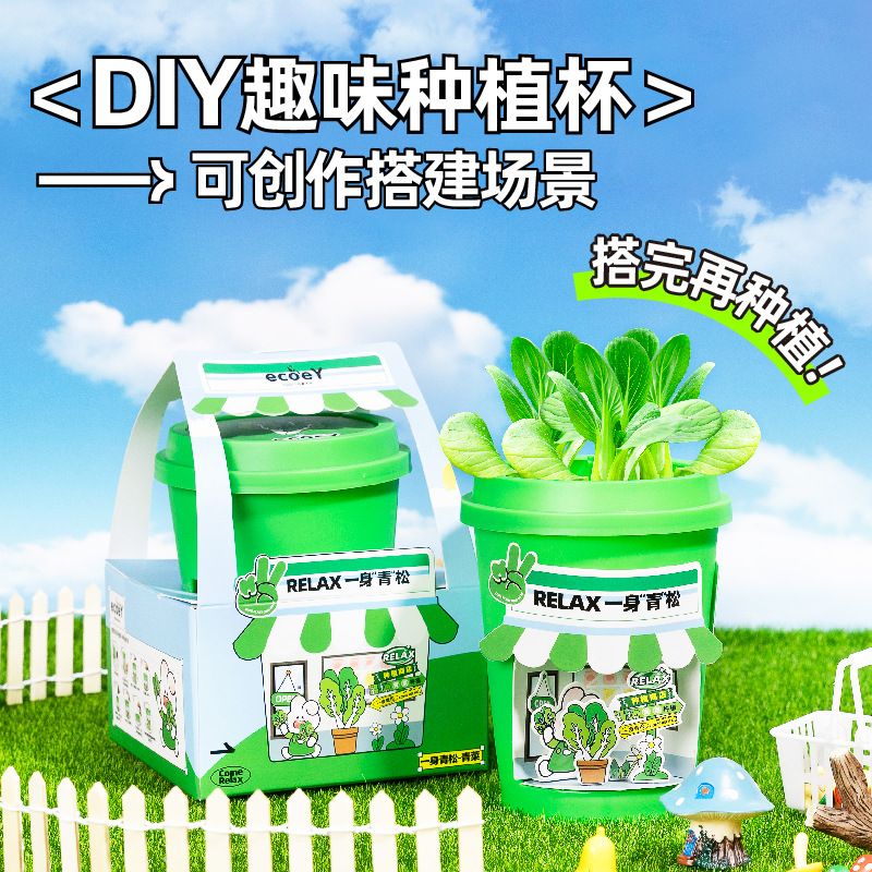 ecoey亲子创意DIY儿童科学种植小盆栽幼儿园种植土盆景绿植