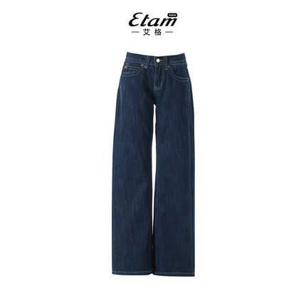 艾格低腰窄版深蓝色直筒牛仔裤女2026春季新款百搭显瘦垂感牛仔裤