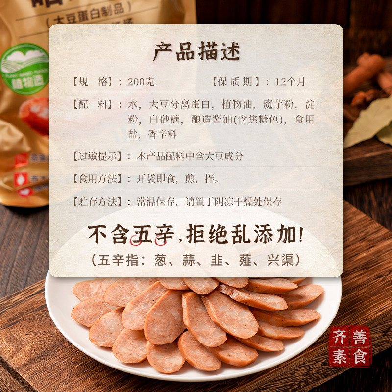 齐善素食哈红肠佛家纯素仿荤素肉素香肠火腿肠素肠哈尔滨红肠即食