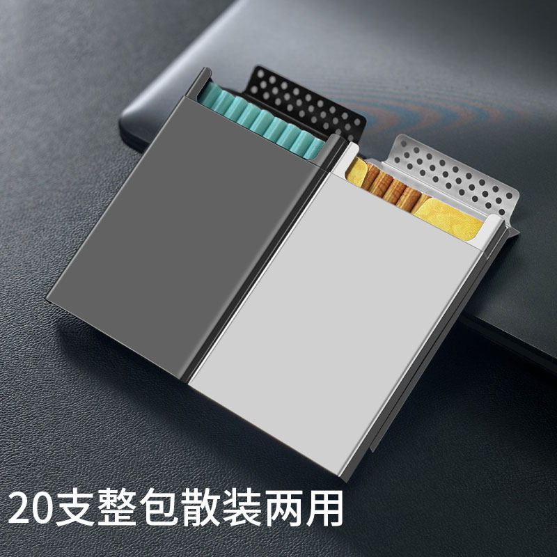超薄铝合金烟盒男便携自动滑盖细支粗中支20支整包装高档自卷烟盒