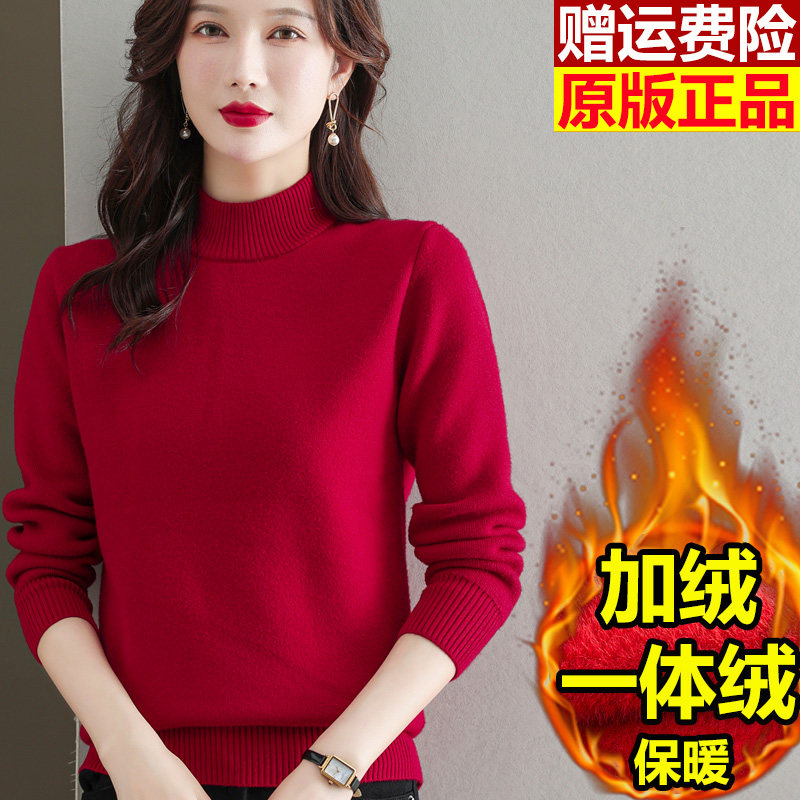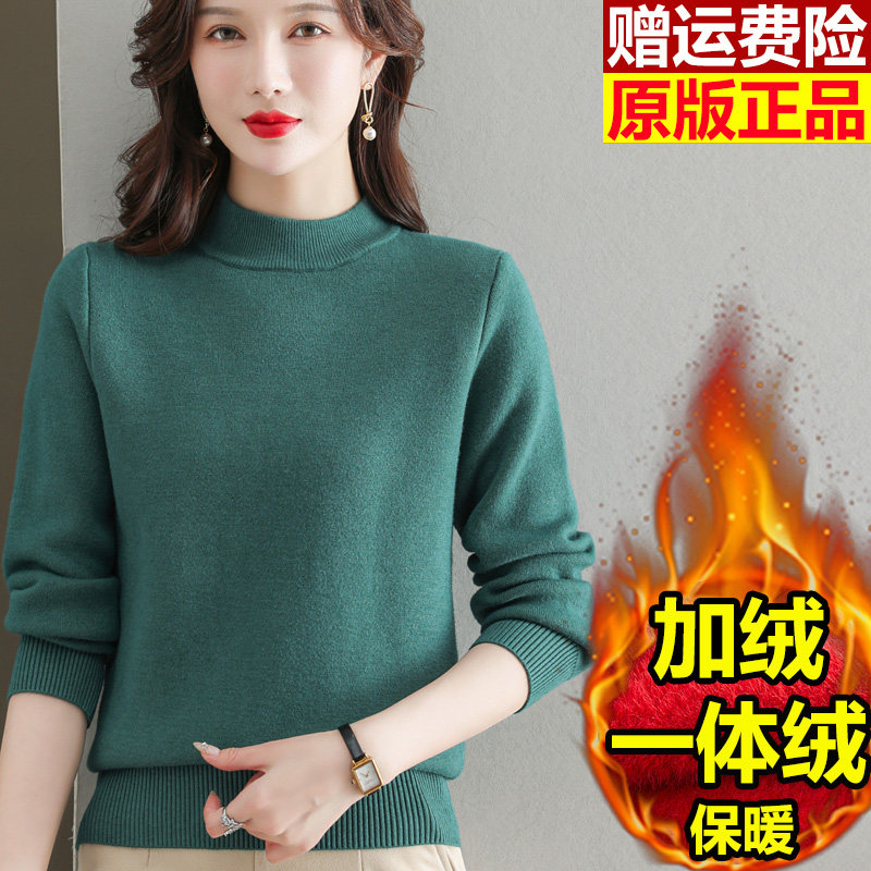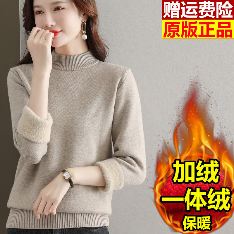 加绒毛衣女秋冬一体绒加厚打底衫