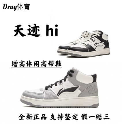 李宁天迹HI高帮男鞋板鞋新款经典黑白熊猫休闲鞋子秋冬加绒运动鞋