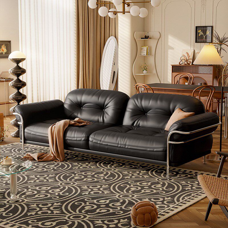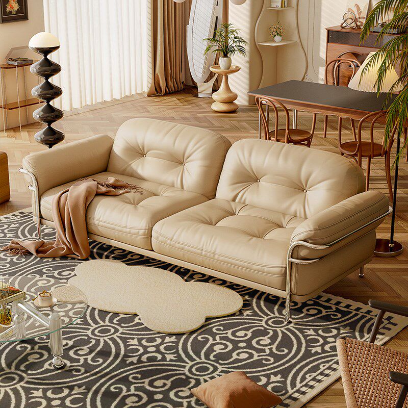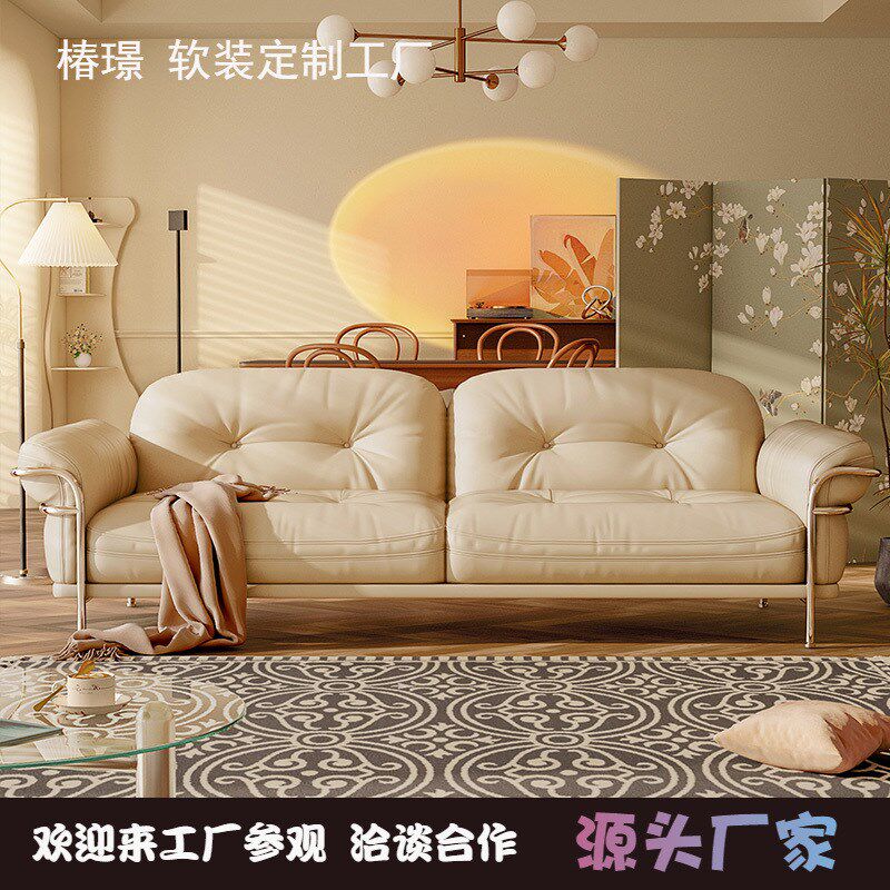 现代简约复古酷萌云朵沙发别墅客厅小户型轻奢奶油风皮艺三人沙发