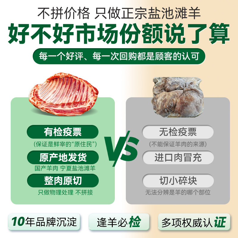 羊排新鲜4斤整排宁夏盐池滩羊肉冷冻羔羊整扇羊小排烧烤手抓羊肉