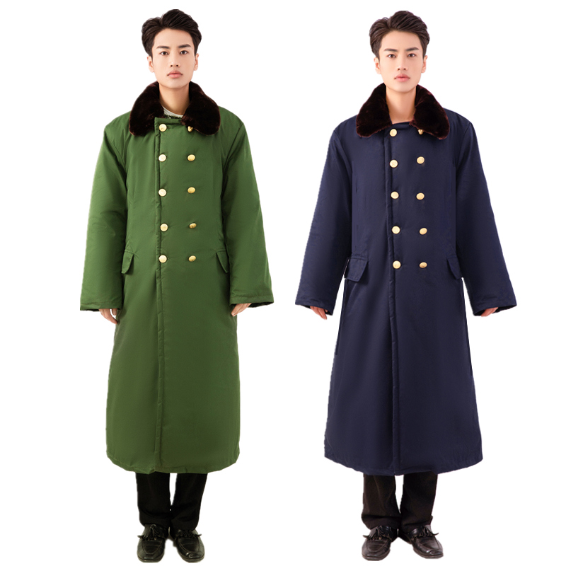 正品军大衣冬季加绒加厚保暖老式棉大衣男劳保防寒服纯棉棉花黑色