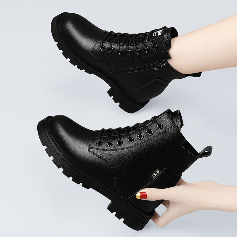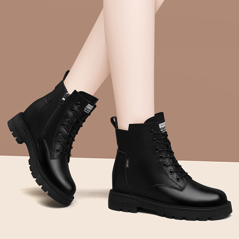 真皮内增高女鞋子2025年新款秋冬季加绒二棉鞋高帮英伦风软底皮鞋
