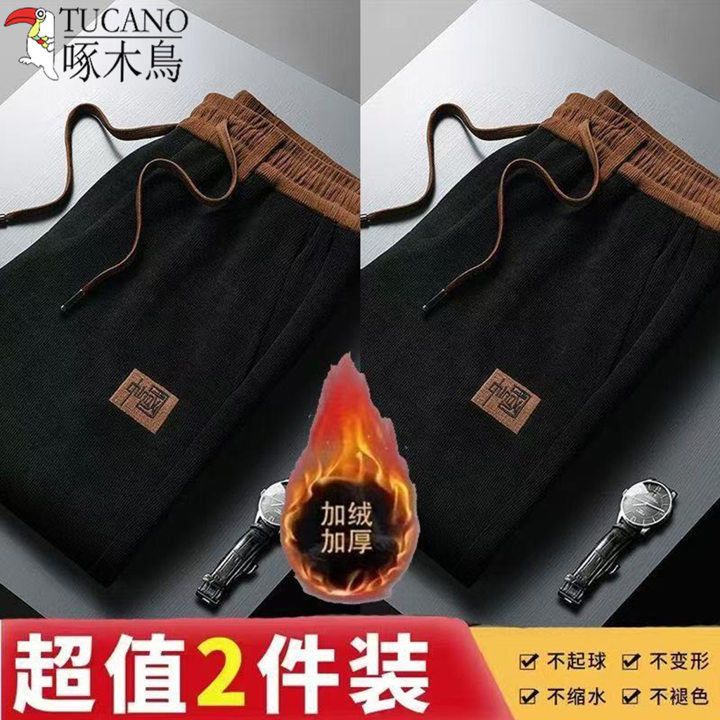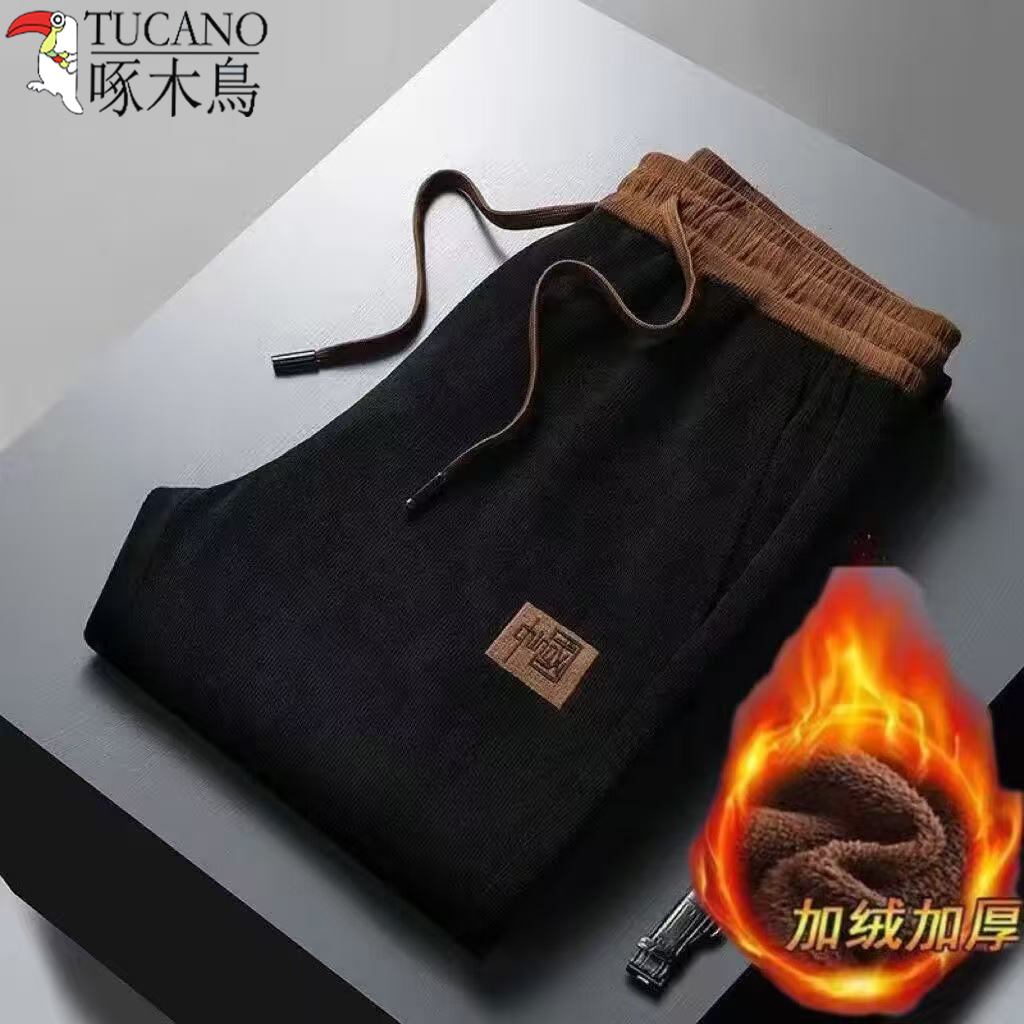 啄木鸟秋冬新款潮流刺绣百搭休闲卫裤加绒加厚简约舒适保暖直筒裤