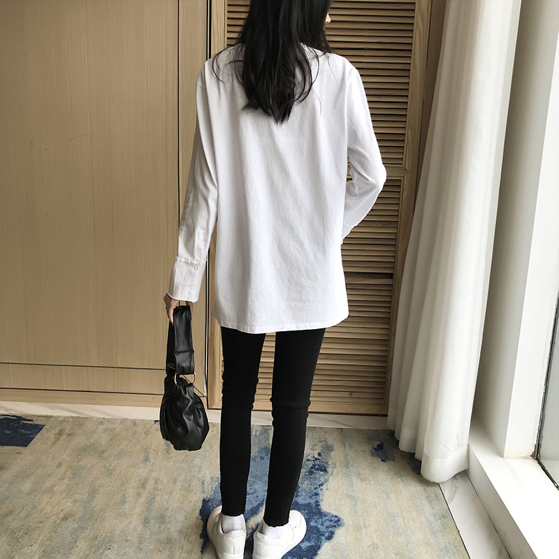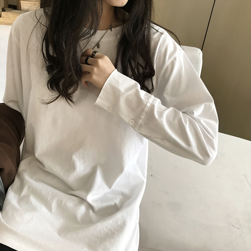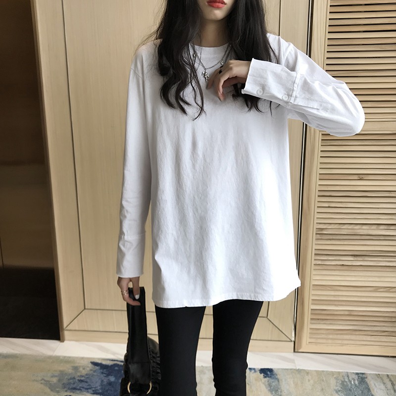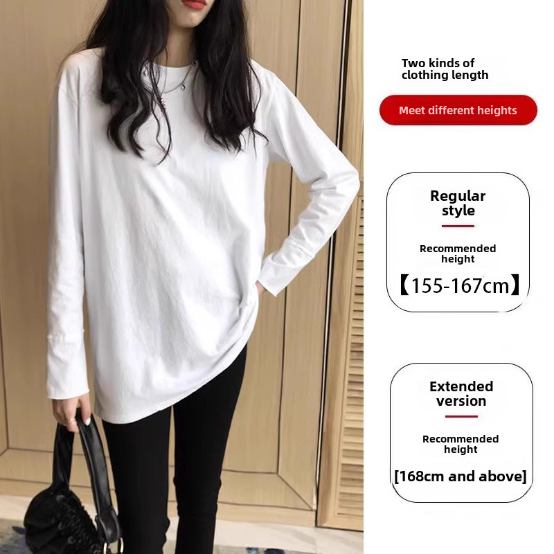 2025春秋中长款宽松纯棉白色长袖遮屁股t恤打底衫女叠穿显瘦上衣