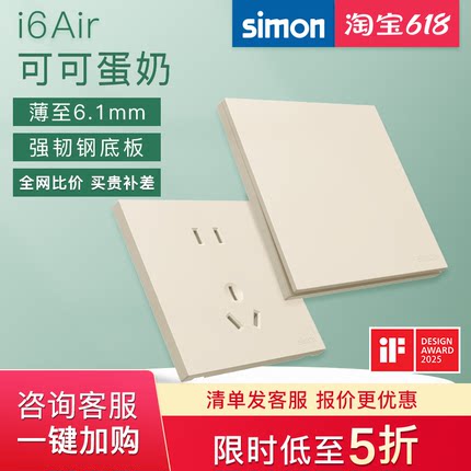 西蒙开关插座i6air可可蛋奶超薄款86型五孔面板官网店官方奶油风