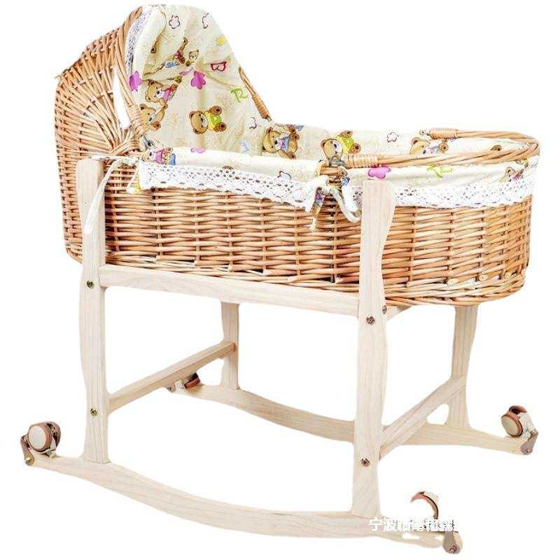藤编婴儿摇篮床儿外出便携手提篮车载安抚睡篮宝宝床摇篮实木一件