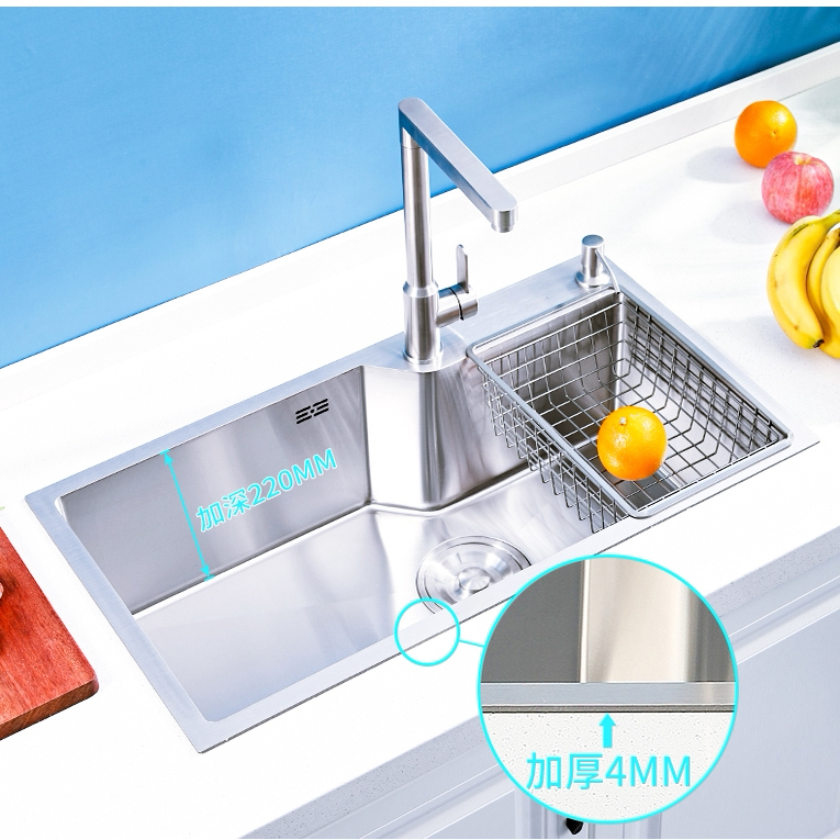 水槽厨房洗菜盆不锈钢手工盆 双盆改单盆3mm加厚拉丝洗碗盆大水池