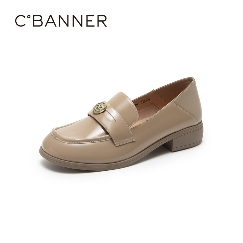 千百度漆皮乐福鞋秋季气质小皮鞋一脚蹬英伦风女鞋真皮百搭中跟