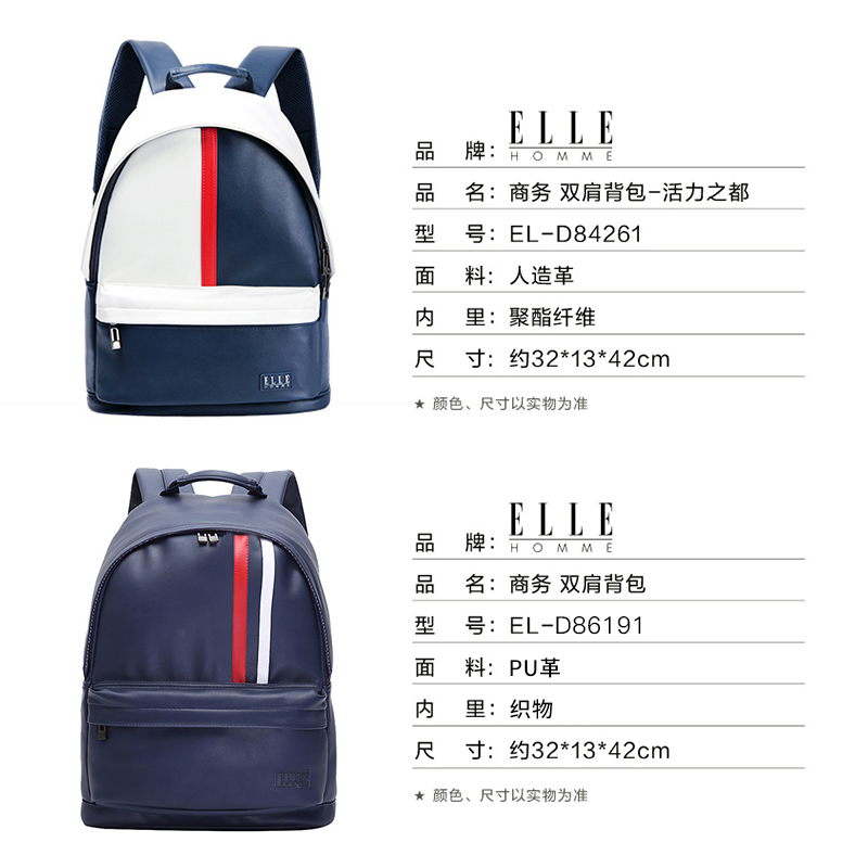ELLE HOMME 笔记本电脑户外旅行包男女经典红白蓝法国商务双肩包
