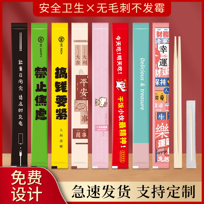 竹筷独立包装带牙签纸纸印刷
