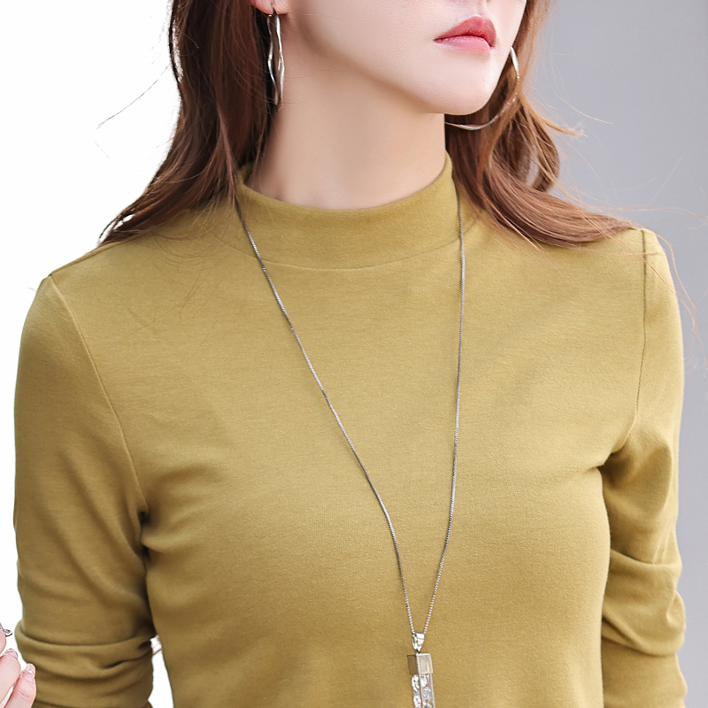 半高领纯色长袖t恤女大码修身显瘦百搭奶奶老人秋衣中年妈妈打底