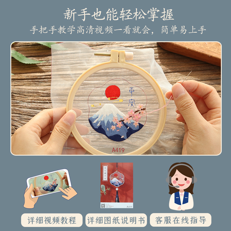 手工平安符diy刺绣材料包自制作书签苏绣中国风车挂件送男友礼物