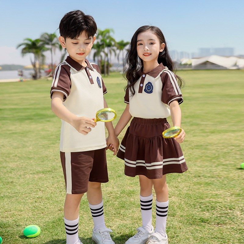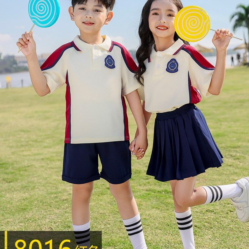 学院风橙色校服套装小学生夏季新款老师男女儿童班服纯棉幼儿园服