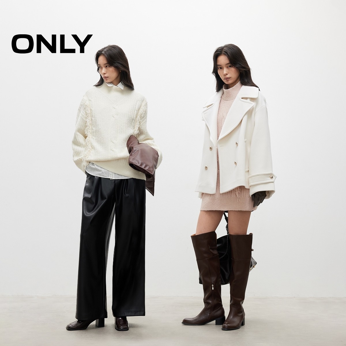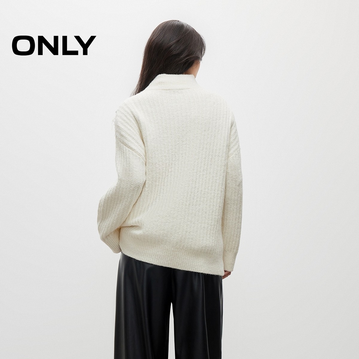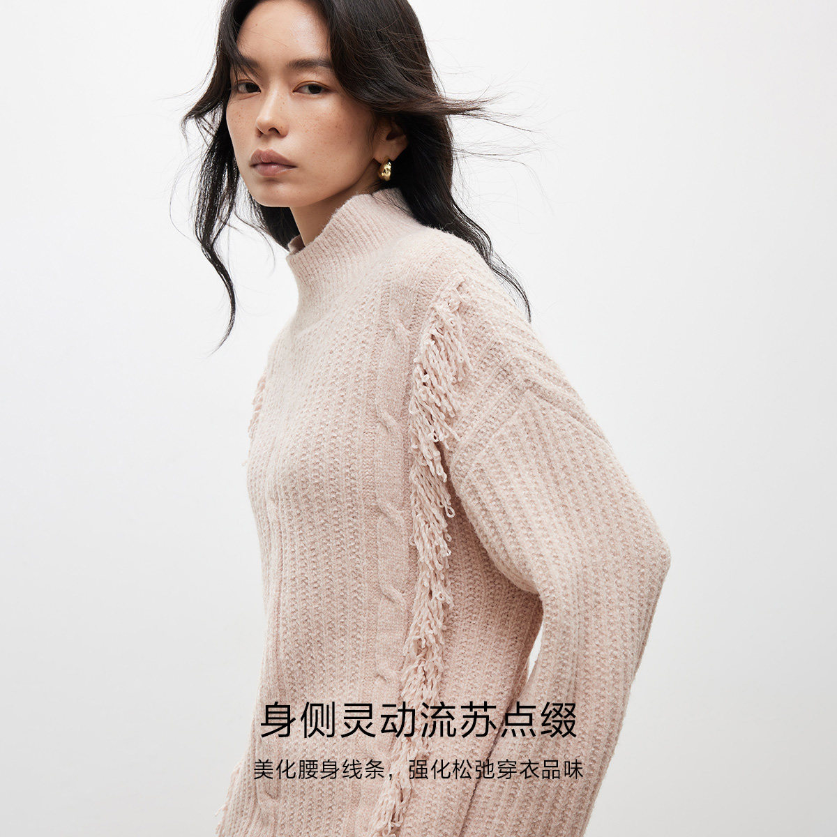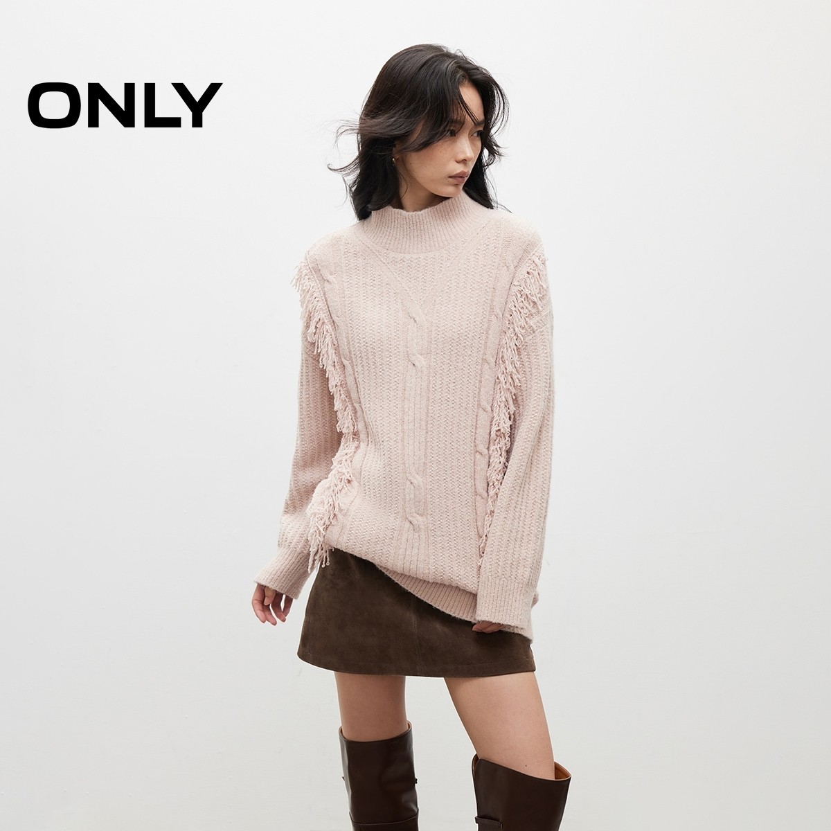 ONLY2025冬季慵懒随性灵动流苏含绵羊毛保暖高领毛衣针织衫女