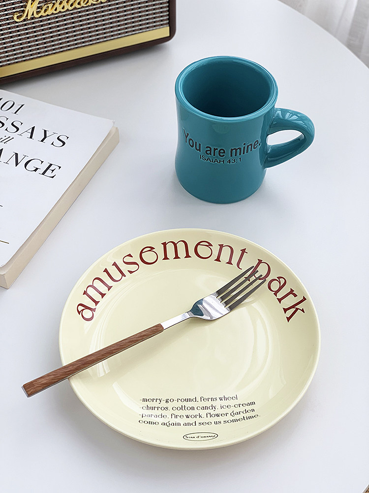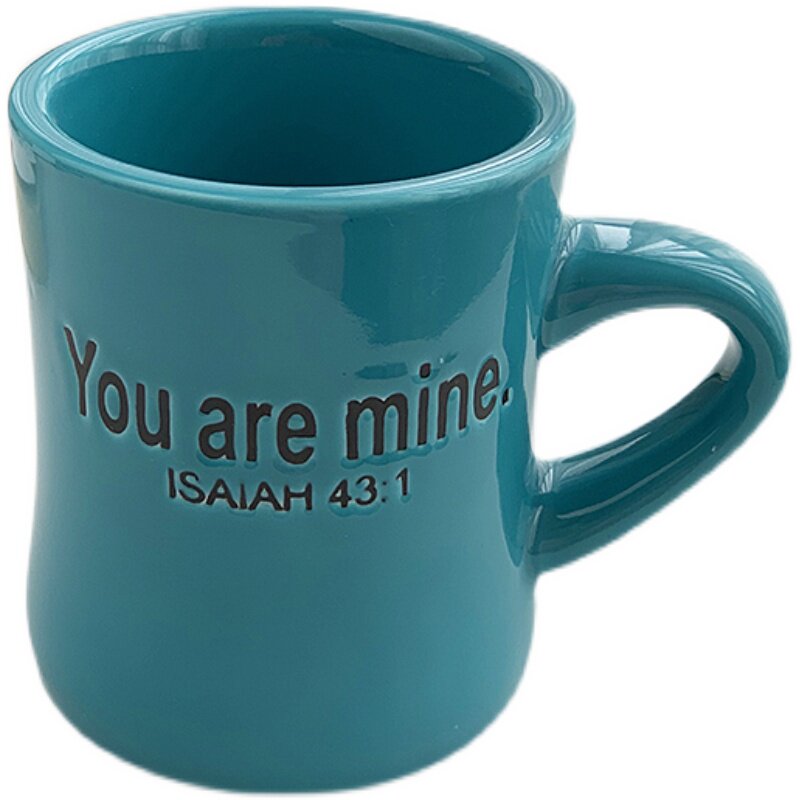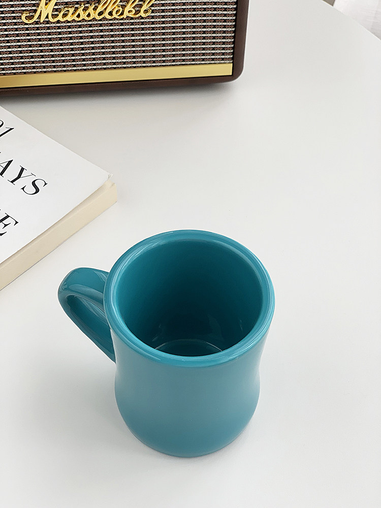 安木良品 外贸出口 韩国ins复古孔雀绿字母陶瓷杯子小蛮腰马克杯