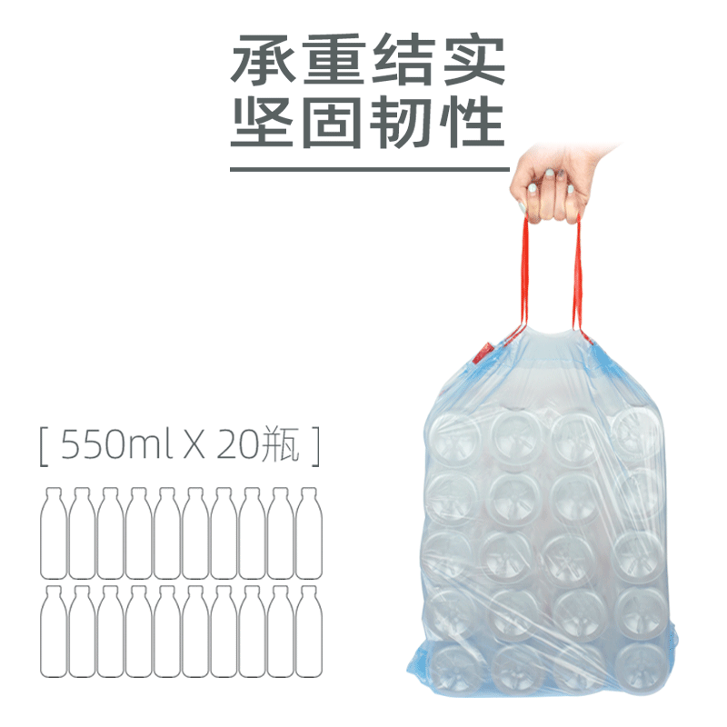 抽绳垃圾袋家用穿绳式拉绳束口塑料绳加厚抽带提拉挂耳抽拉提收口