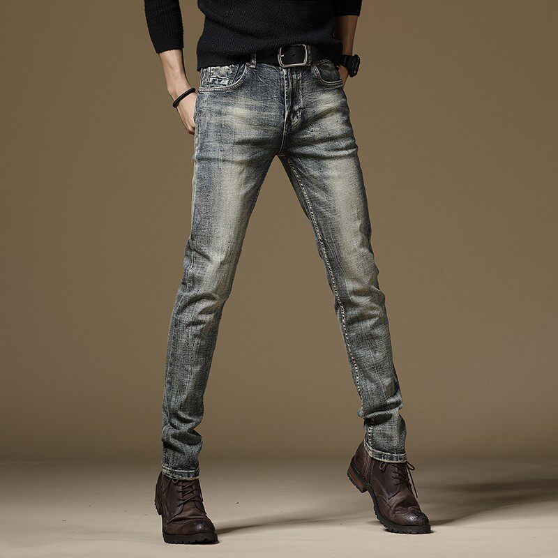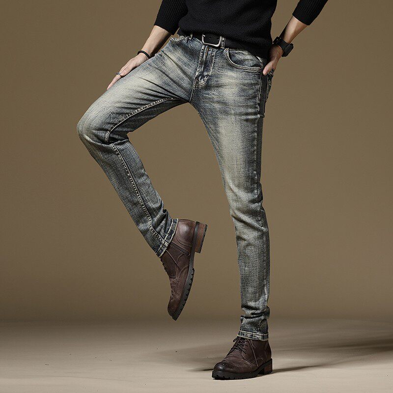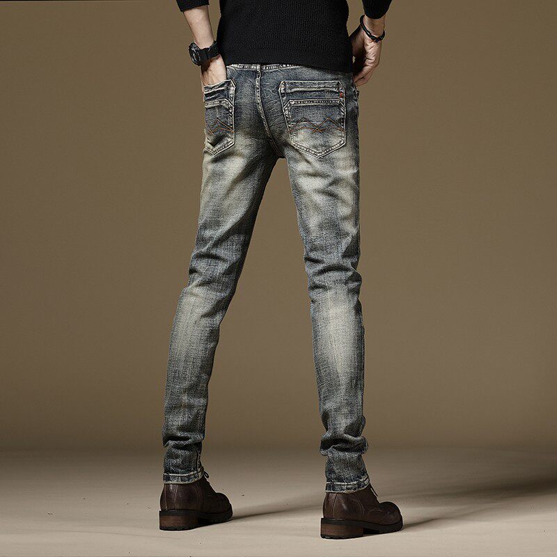 欧美秋冬新款弹力直筒复古个性休闲牛仔裤男修身潮流怀旧长裤百搭