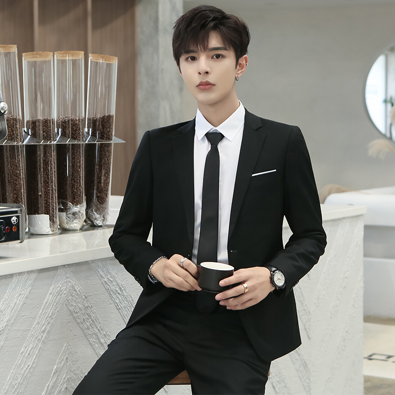 西服套装男修身商务休闲职业正装新郎伴郎结婚礼服上班纯色小西装