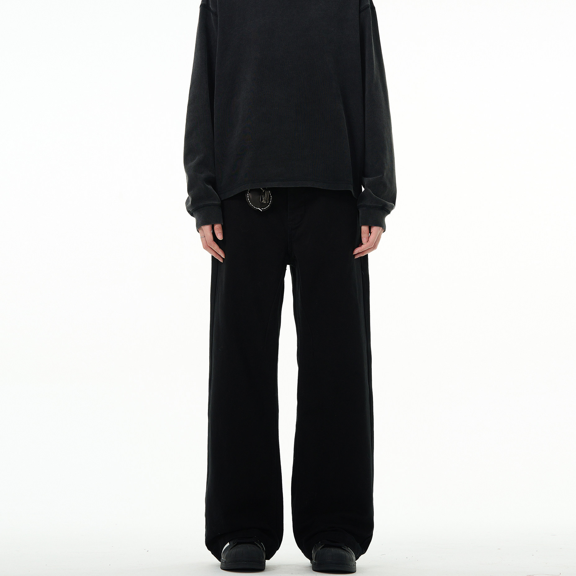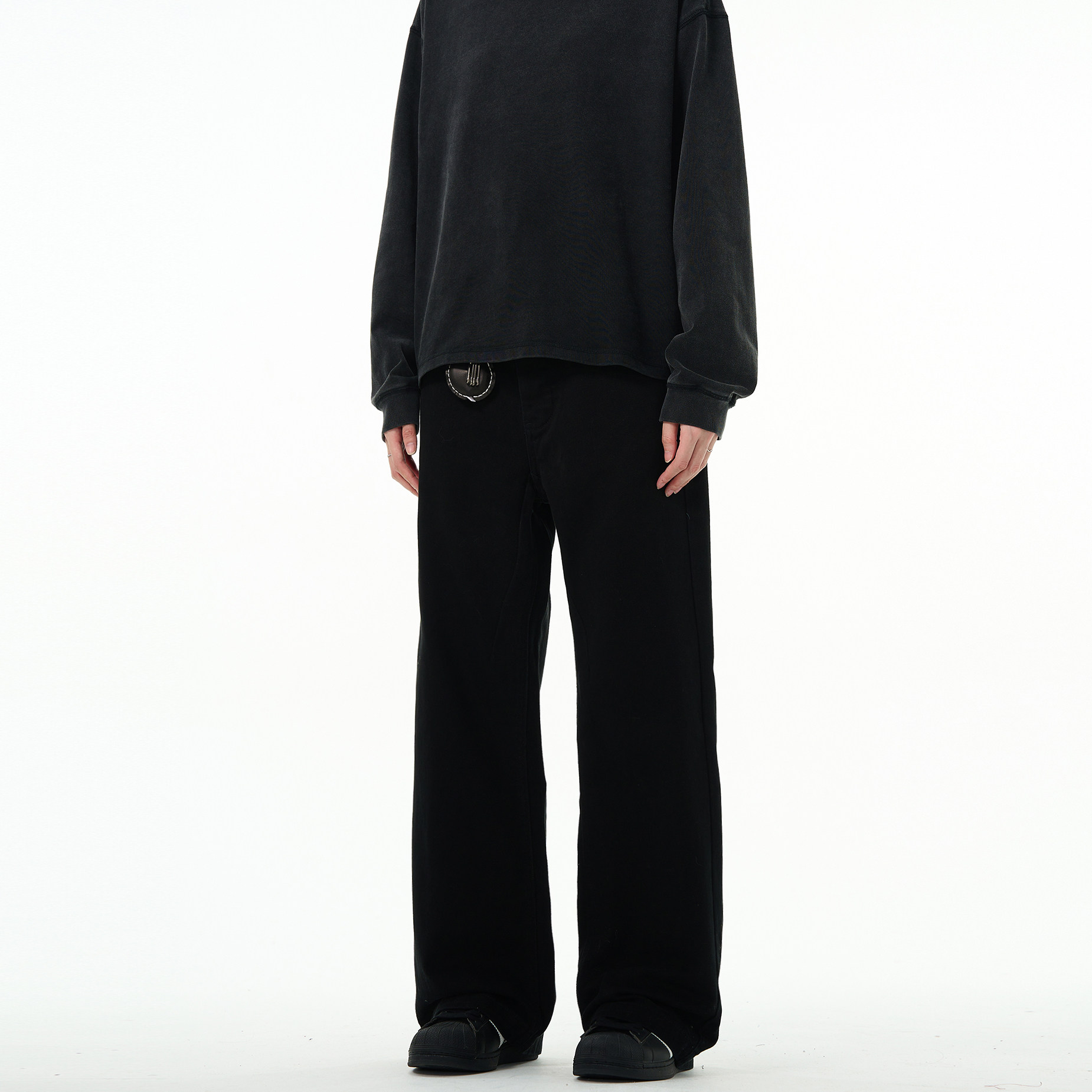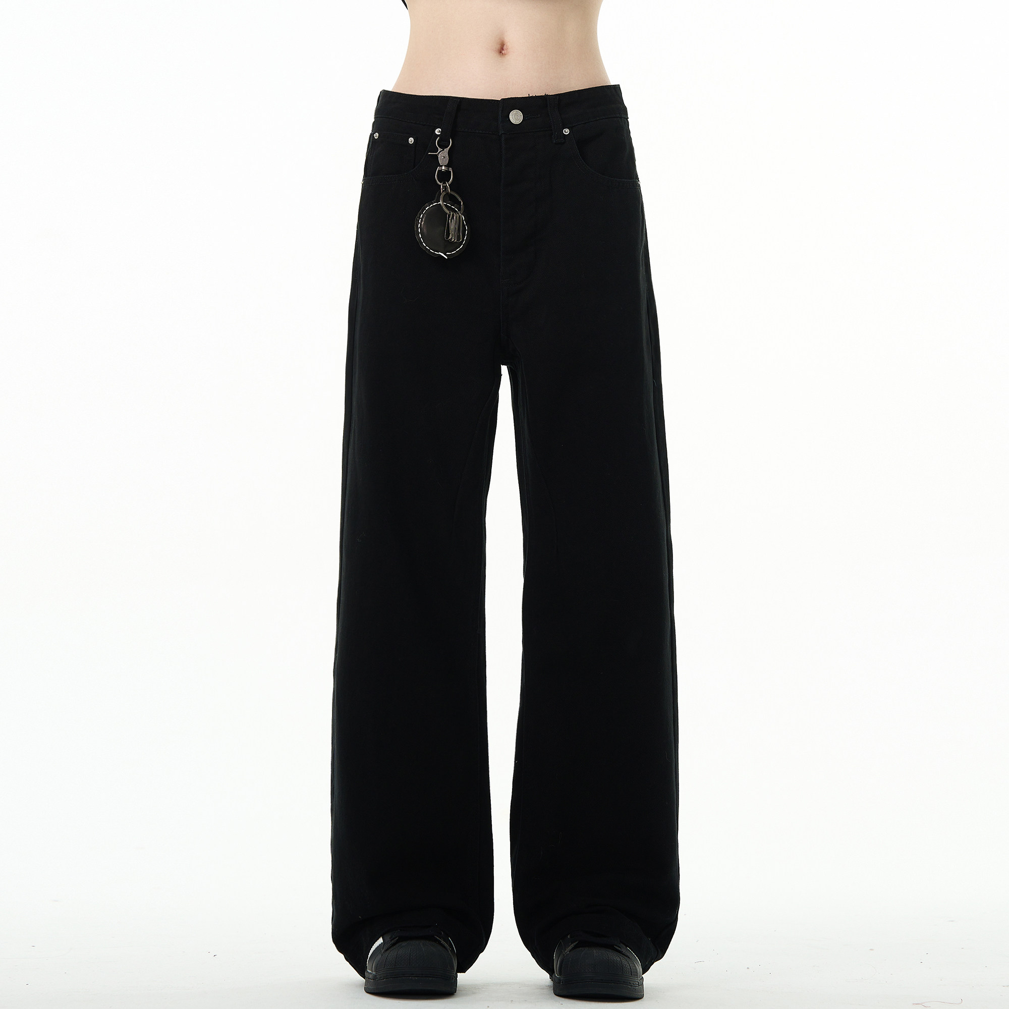 MADWITCH黑色cleanfit宽松直筒牛仔裤美式复古微喇vintage裤子男