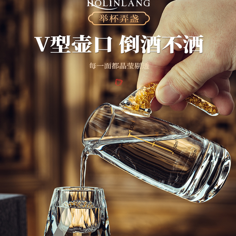 高档金箔白酒杯礼盒套装高端家用一口杯分酒器水晶玻璃酒具摆件