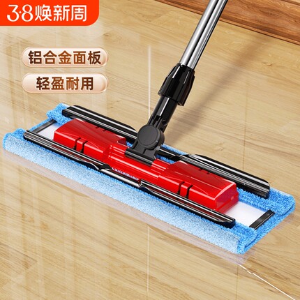美丽雅平板拖把家用拖布木地板省力器懒人大号夹布可夹铝合金旋转