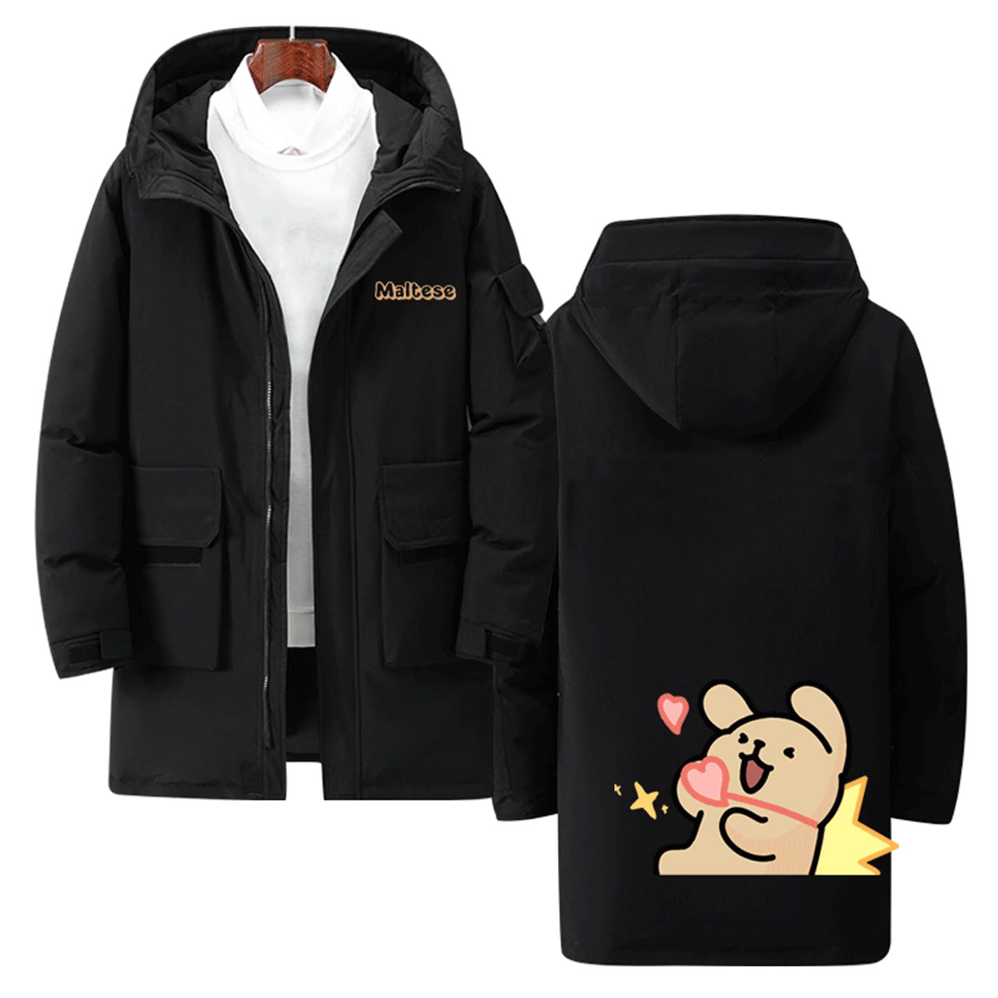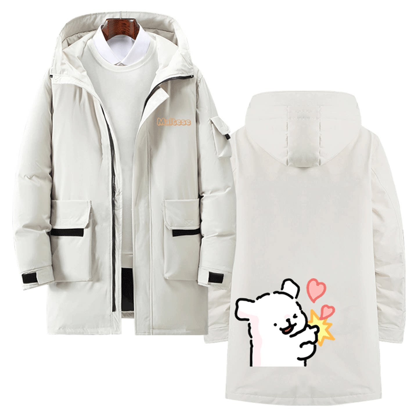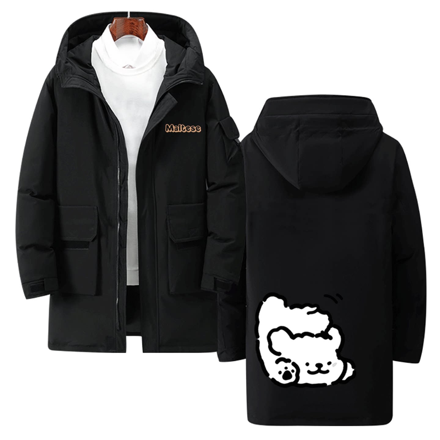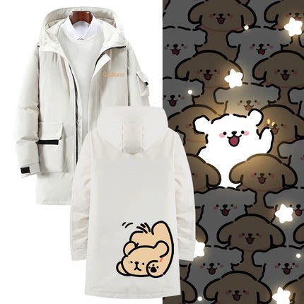 线条小狗可定制中长款羽绒服卡通可爱联名周边印花男女情侣秋冬季