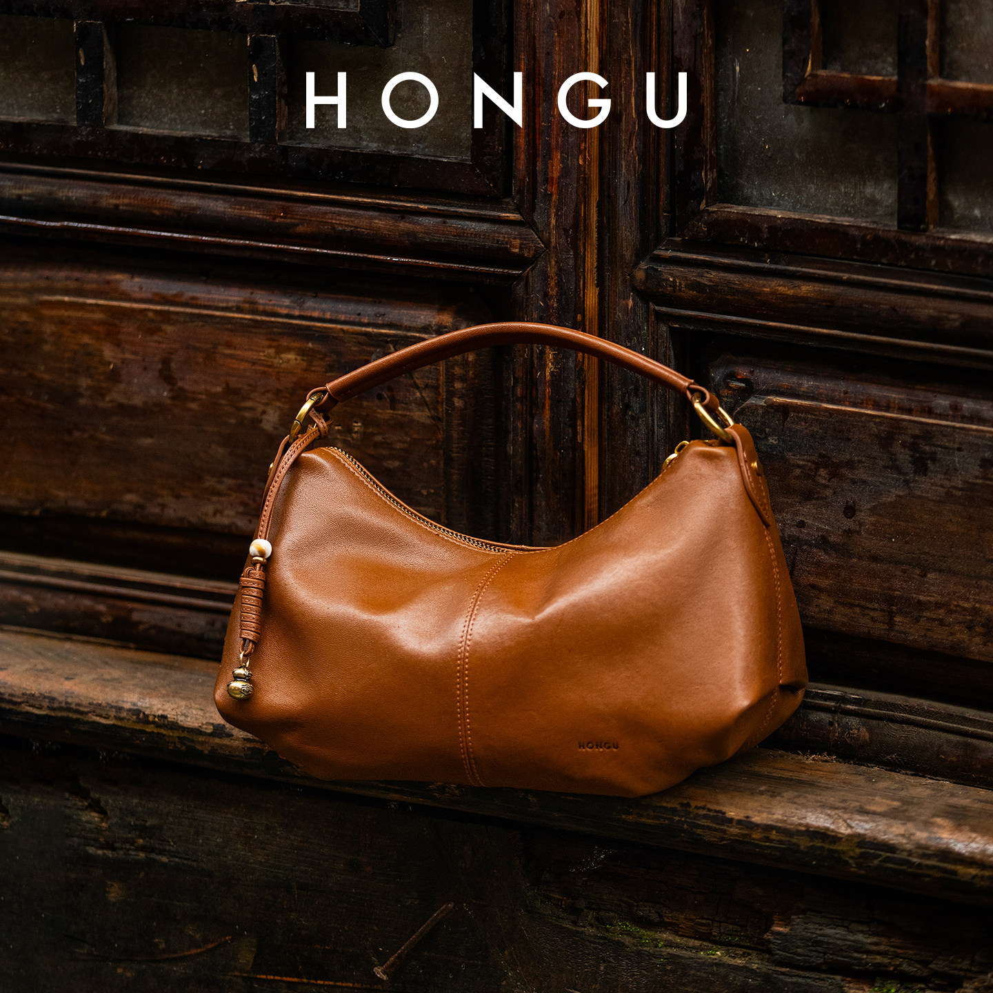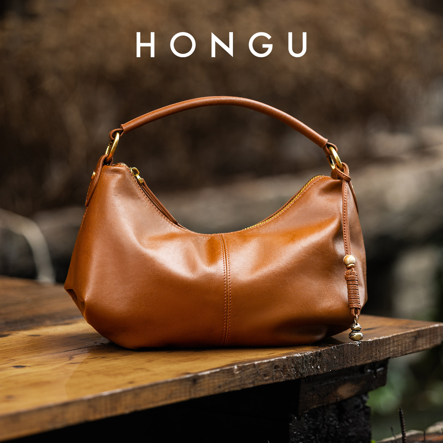 红谷包包女2025新款质感真皮单肩手提包小众设计牛皮斜挎包女士包