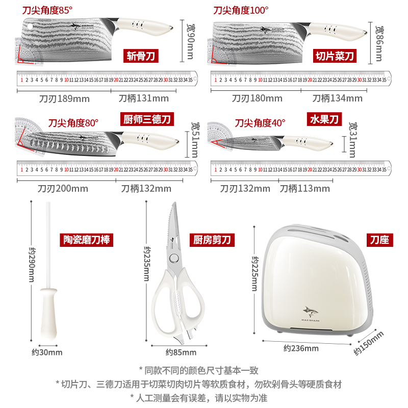 狂鲨大马士革钢刀具套装厨房家用全套厨具菜刀砧菜板锅铲勺子组合